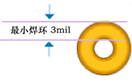 多層板最小內徑0.25mm,最小外徑為0.5mm,雙面板最小內徑0.3mm, 最小外徑0.6mm |